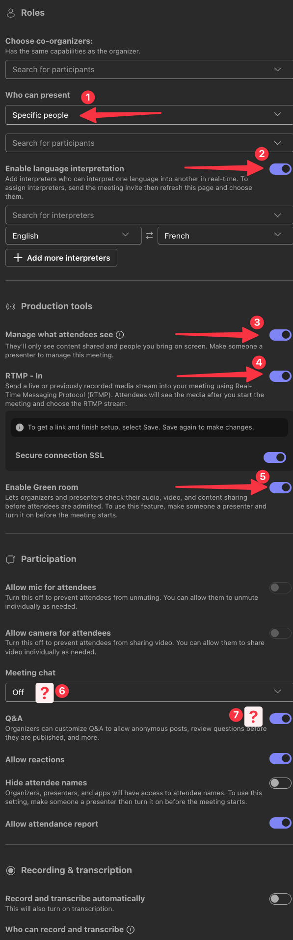 - et 7. Décidez si vous souhaitez activer le Chat et/ou les Q&R.